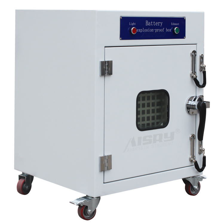 電池防爆箱主要用于電池安全性能測試中的人身安全保護,在進行過充過放,充放電測試和其他測試中,將電池置于防爆箱中,外接充放電測試儀中,為操作人員及儀器進行保護。
