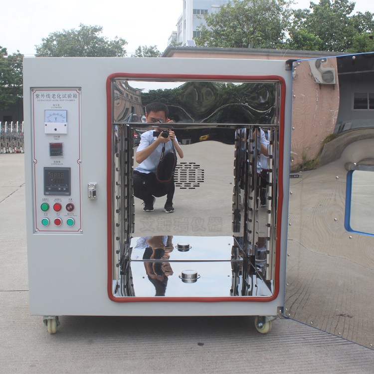 用于材料的紫外線加速試驗(一般在70℃時材料此箱內試驗3小時相當于自然界環境中2個月老化結果)。可用污染灰色標做參判定材料老化等級。也可以目測材料的老化程度