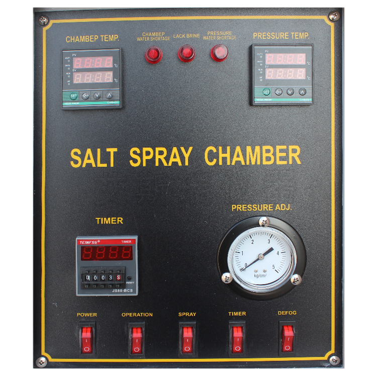 鹽霧箱實驗時采用蒸汽直接加溫方式,升溫速度快,溫度分布均勻,減短待機時間。進口溫度控制器使用數字顯示,PID控制,誤差±0.1℃。
