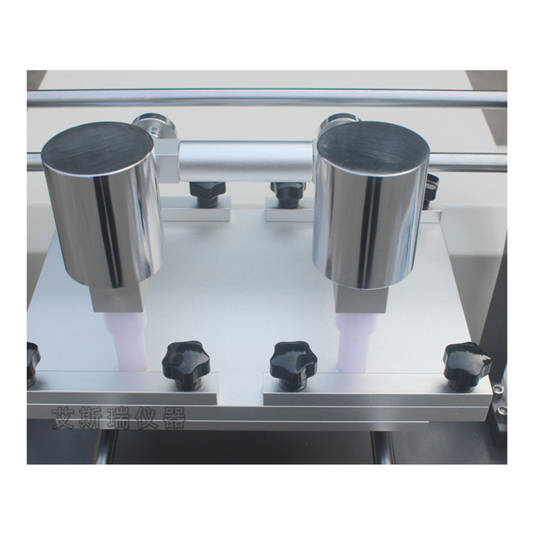 雙工位電動染色堅牢度試驗機用干燥或濕潤之白棉布扎于本機之摩擦錘表面,以一定之重荷及次數,摩擦有色試片后,對照灰色標,評定染色摩擦堅牢度等級。亦可作為有機溶劑之摩擦試驗。具有斷電記憶功能。
