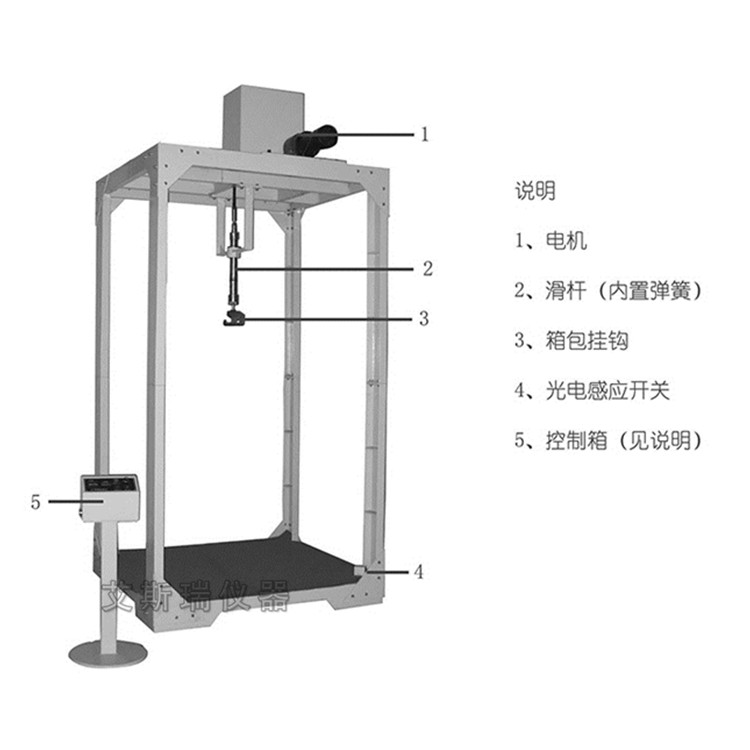 用于測試旅行箱提把、車縫線及整體結構的耐振蕩沖擊試驗。