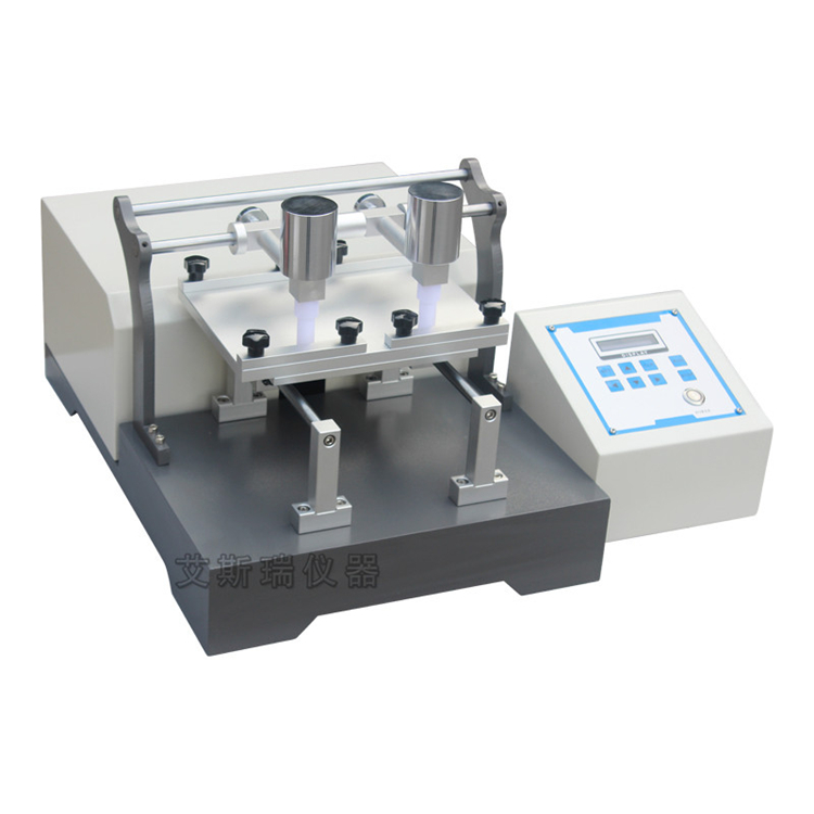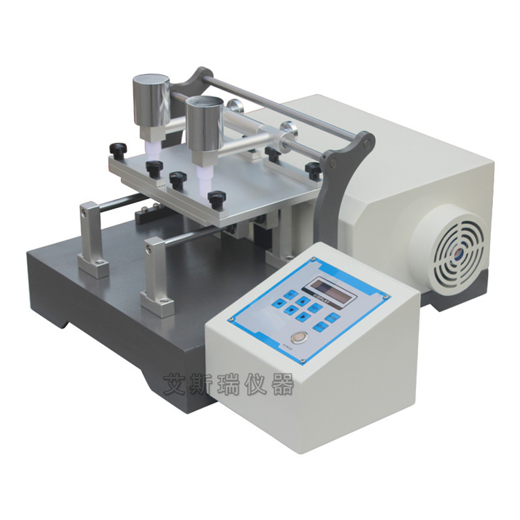 染色堅牢度試驗機用干燥或濕潤之白棉布扎于本機之摩擦錘表面,以一定之重荷及次數,摩擦有色試片后,對照灰色標,評定染色摩擦堅牢度等級。亦可作為有機溶劑之摩擦試驗。具有斷電記憶功能。
