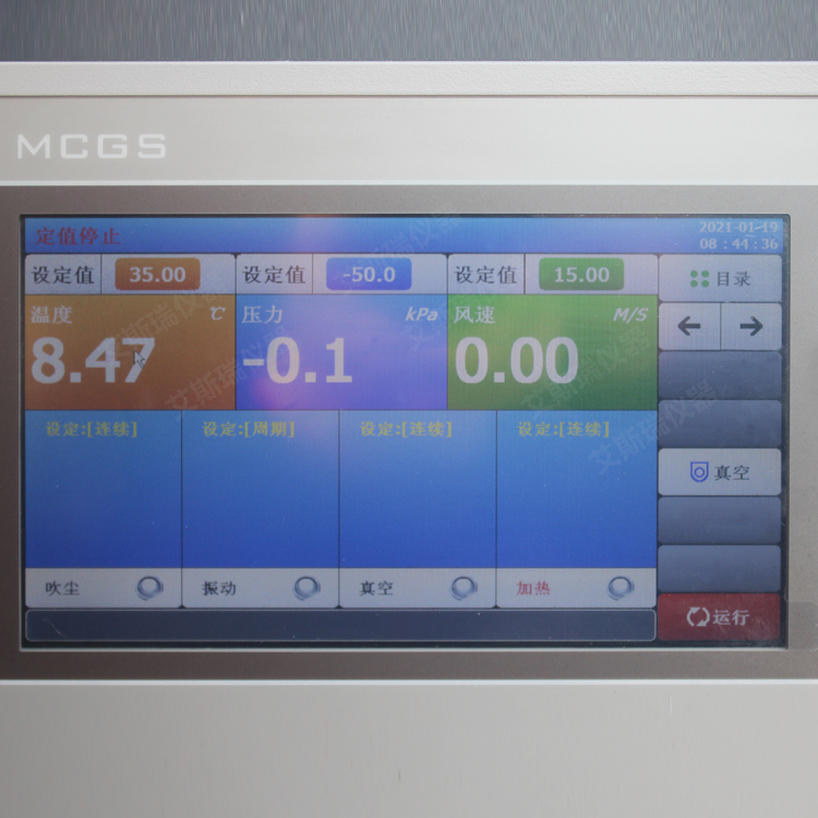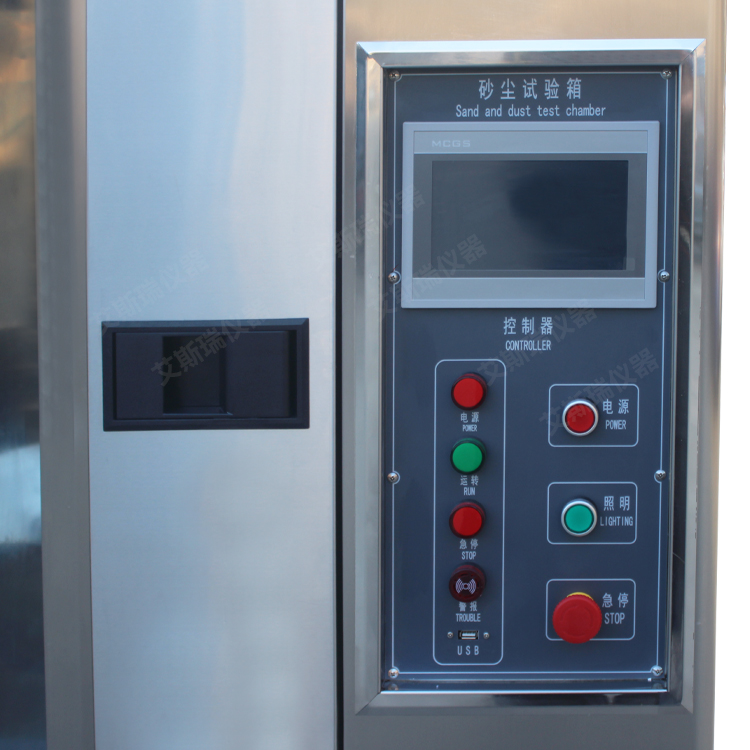 沙塵試驗箱學名為“砂塵試驗箱”,模擬自然界風沙氣候對產品的破壞性,適用于檢測產品的外殼密封性能,設備有載灰塵垂直循環的氣流,試驗用灰塵可以循環使用,整個風道采用進口不銹鋼板制作,風道底部與錐形料斗接口連接,風機進出風口直接與風道連接,再在適當的位置上將工作室頂部擴散口接入工作室體,形成“O”型閉式垂直吹塵循環系統,使氣流能順暢地流動,大限度的使塵土分散均勻。采用單臺大功率低噪音離心風機,根據試驗需要用變頻調速器來調節風速