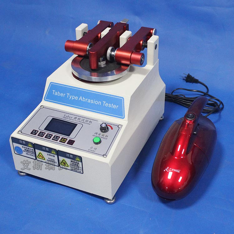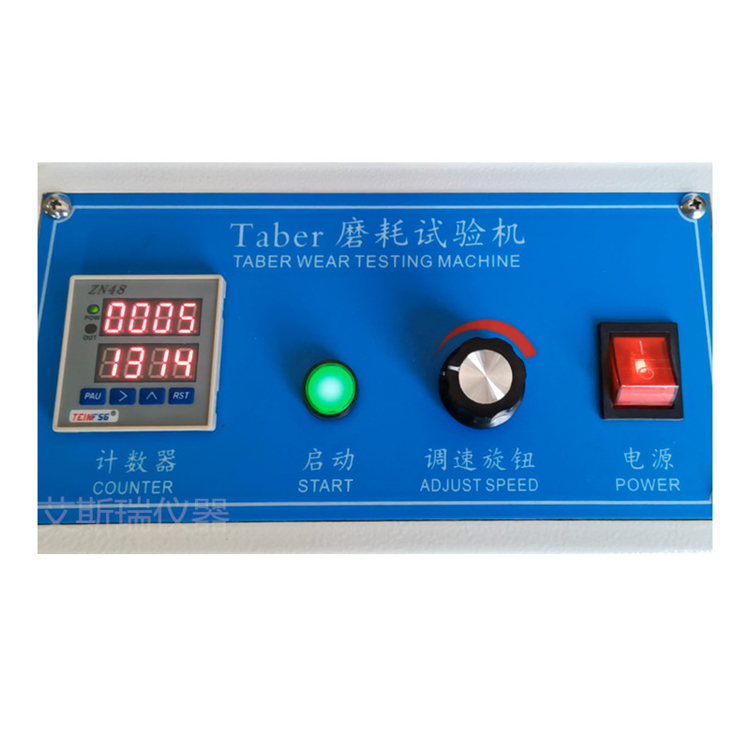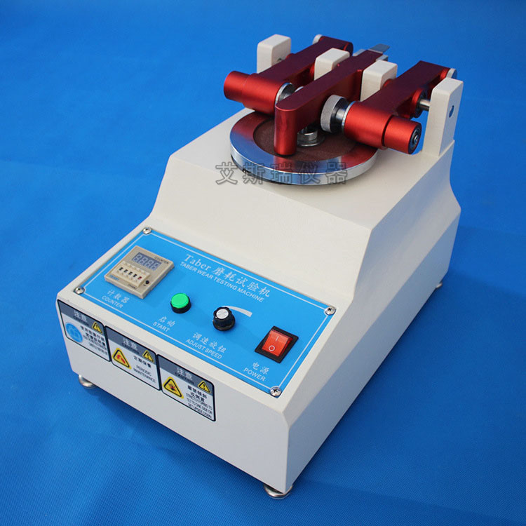 產品說明:本機適用于皮革、布料、涂料、紙、地磚、合板、玻璃、天然橡膠等到耐磨試驗,方法為用標準切刀裁取試件,用規定型號的砂輪,并負荷一定的重量加以磨耗,到規定的轉數后取出試件,觀察試件磨后的狀況或試件試驗前的重量與試驗后的重量差。